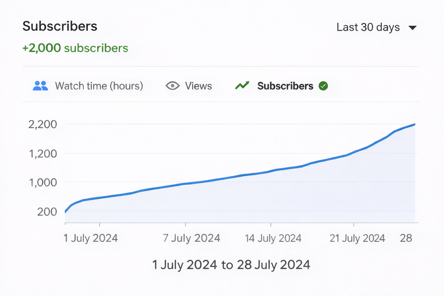 Rohan invested in the 2000 YouTube Subscribers pack. We delivered these subscribers over 14 days, tripling his total count to over 3,100. This moved him into the "Micro-Influencer" tier.