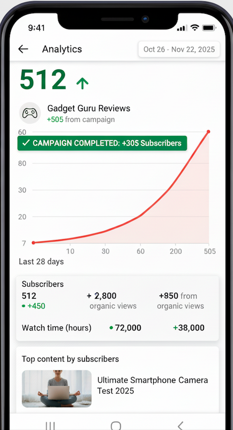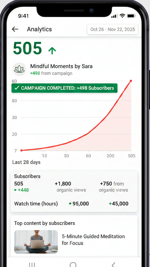 💡 Our 7-day drip-feed method protects your channel integrity and ensures features get unlocked safely.